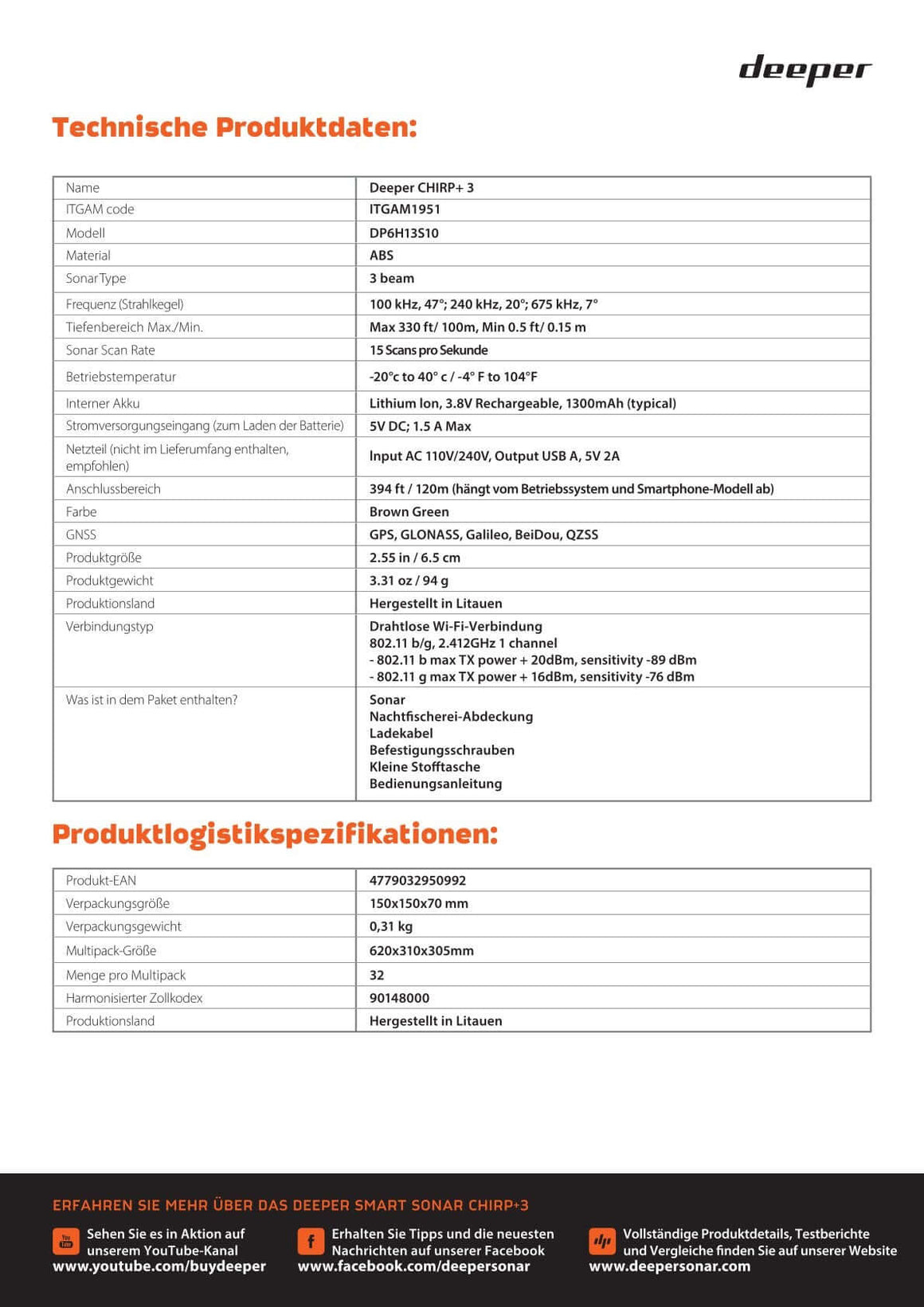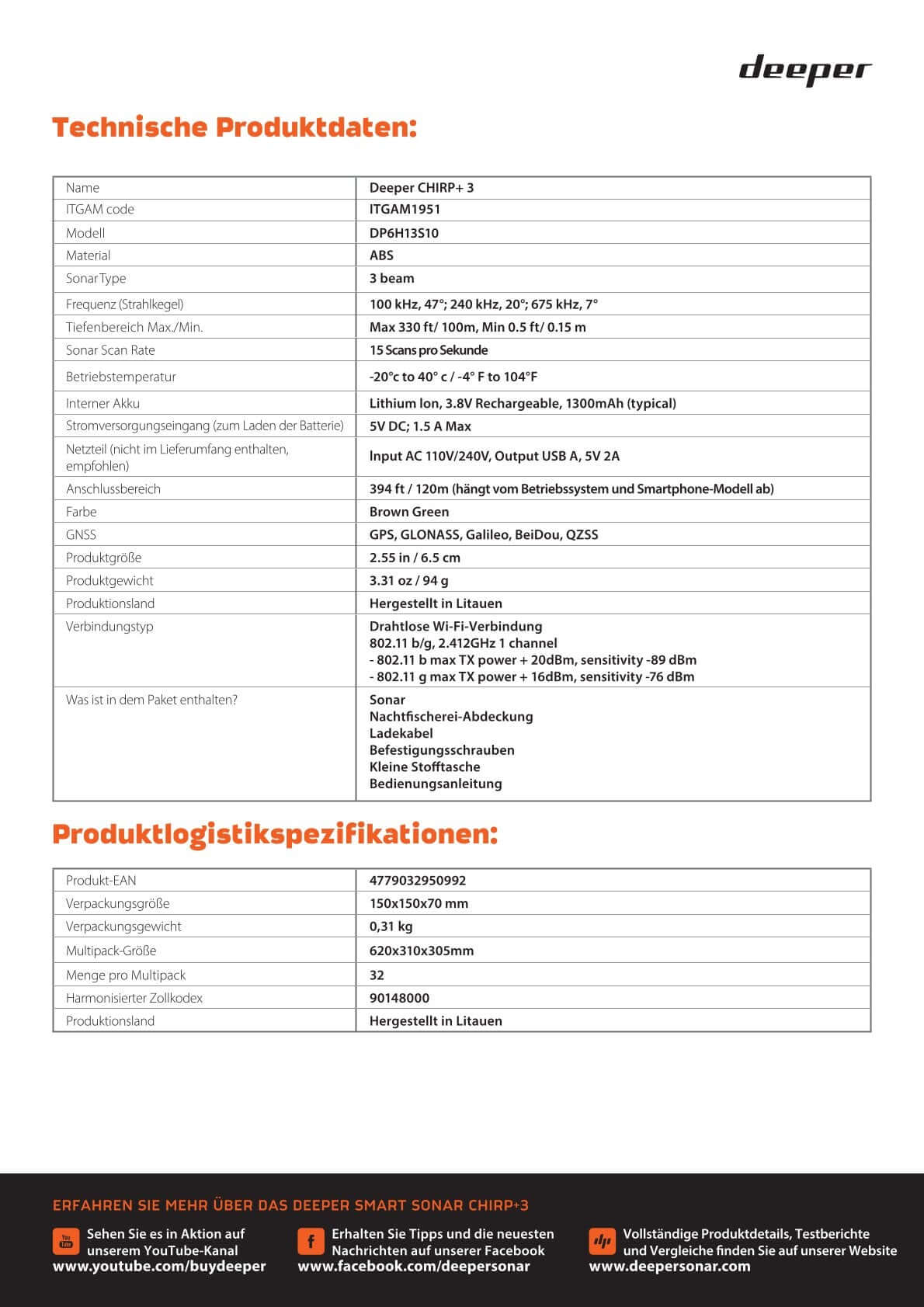 DEEPER chirp+ 3 Castable Sonar Fish Spotter Fischfinder